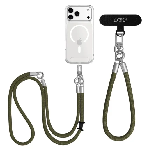 A Tech-Protect C10S Rope egy két darabból álló pántszett, amely fonott zsinórból készült: egy hosszú crossbody nyakpántból, amely vállon át viselhető, valamint egy rövid csuklópántból. A két pánt egymáshoz is csatlakoztatható, így egy hosszabb, összesen 145 cm-es pántot alkotnak. A fém kiegészítők és a visszafogott színvilág esztétikus, minimalista megjelenést adnak a szettnek.