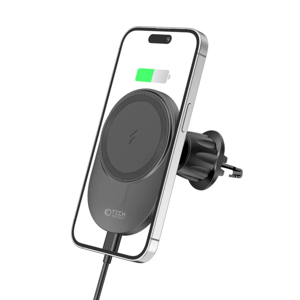 A Tech-Protect MM15W-V1 egy kényelmes autós tartó és egy szupergyors vezeték nélküli töltő kombinációja, amely támogatja a MagSafe technológiát 15 W-os maximális teljesítménnyel.