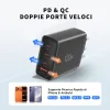 - Négyportos kialakítás: A töltő három Type-C és egy USB-A porttal van felszerelve, maximális sokoldalúságot biztosítva a legkülönfélébb eszközök csatlakoztatásához.