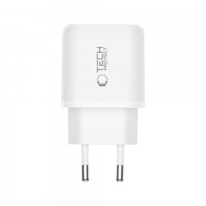 Tech-Protect NCA45W-GAN 2-portos hálózati töltő Pd 45W / Qc3.0 Fehér