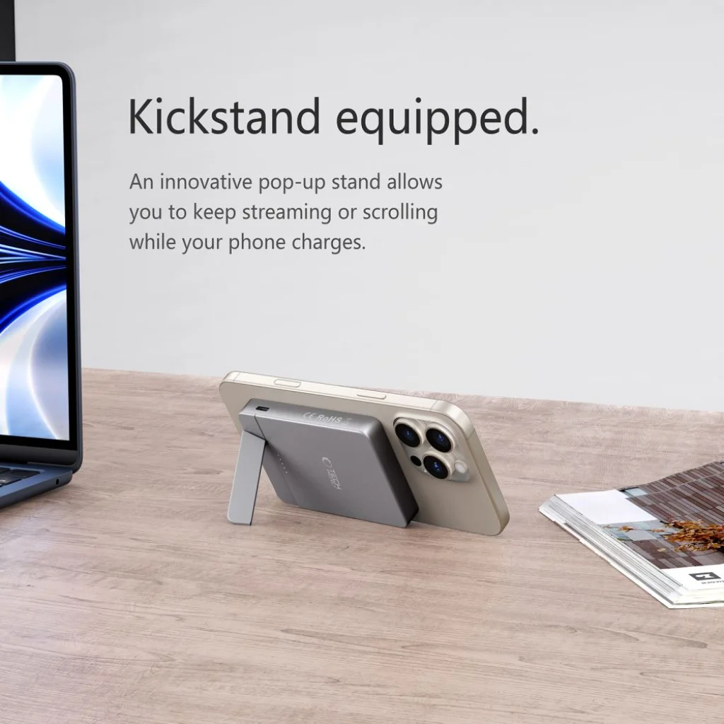 A beépített pop-up állvány segítségével a telefont kényelmesen el lehet helyezni vízszintes és függőleges pozícióban is – ideális megoldás videók megtekintéséhez vagy kéz nélküli videóhívások lebonyolításához. Az ABS és polikarbonát anyagokból készült burkolat biztosítja a mindennapi használat ellenállóságát, míg a beépített védelmi rendszerek védelmet nyújtanak túlfeszültség, túltöltés és túlmelegedés ellen.