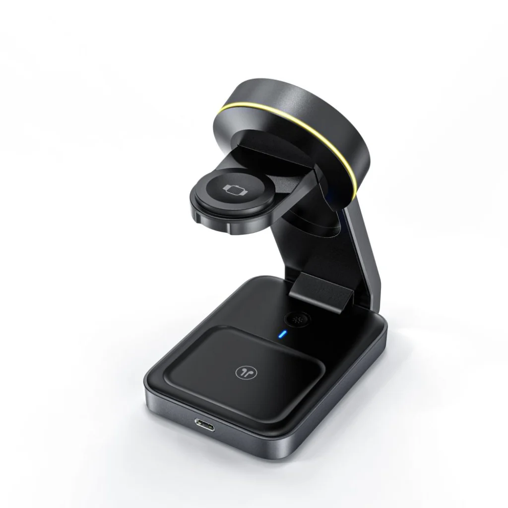 A Tech-Protect QI15W-A28 egy fejlett 3 az 1-ben töltő, amely számos funkciót és kényelmet kínál. Az egyik fő előnye, hogy egyszerre három eszközt is képes táplálni. Így egyszerre töltheti MagSafe-kompatibilis okostelefonját, Apple Watch-ját és vezeték nélküli fejhallgatóit, például az Apple AirPods-ot vagy a Samsung Galaxy Buds-ot. Minden eszköz rendelkezik egy dedikált töltőporttal, ami azt jelenti, hogy minden eszközt önállóan táplálhat. Az összecsukható szerkezetnek köszönhetően könnyen összecsukható és magával viheti az úton. A töltő beépített LED lámpával is rendelkezik, melyet érintőgombbal vezérelhetünk. A Tech-Protect QI15W-A28 egy olyan töltő, amely nemcsak három készülék egyidejű kényelmes töltését kínálja, hanem védelmet és modern megjelenést is biztosít, amely esztétikailag illeszkedik a különböző belső terekbe és stílusokba. Kiváló minőségű anyagokból készült, garantálja a szerkezet tartósságát és szilárdságát. A beépített védelmi rendszer garantálja a biztonságot a töltés során. Megvédi készülékeit a túlmelegedéstől, túlfeszültségtől és rövidzárlattól, megelőzi az esetleges sérüléseket és meghosszabbítja az akkumulátor élettartamát.