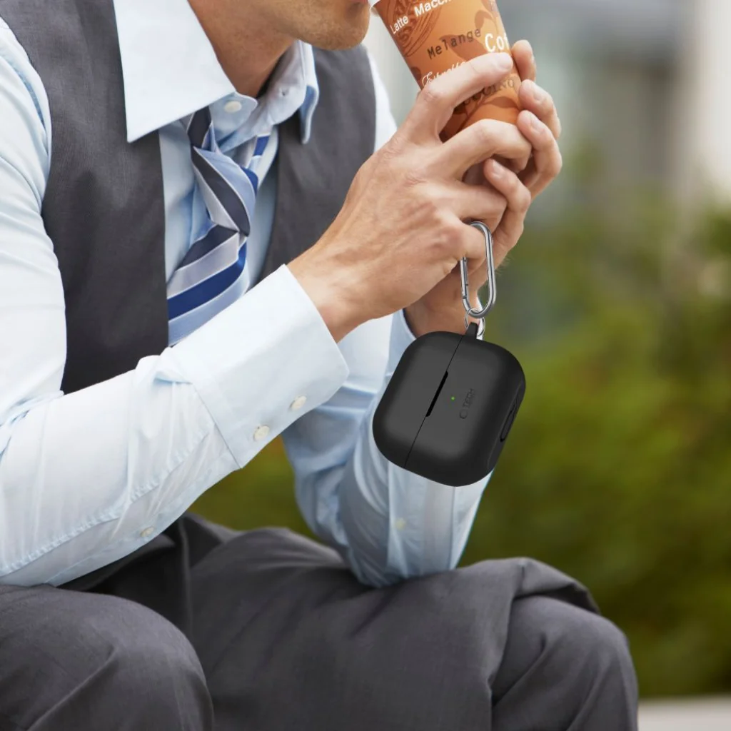 A tok a minimalista dizájn megtestesítője, miközben megfelelő védelmet biztosít a karcolások és leesések ellen. Ezenkívül a tok praktikus karabinerrel van felszerelve, amely megnöveli a felhasználási lehetőségeket - a fülhallgatót rögzítheted a kulcstartóra vagy az övbújtatóra, így szinte lehetetlenné válik a leesés vagy elvesztés.
