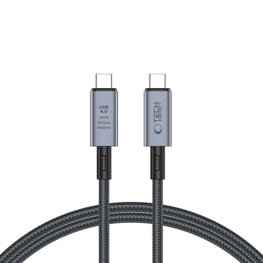 A Tech-Protect UltraBoost Max USB 4.0 kábel egy fejlett kiegészítő, amely megfelel a legigényesebb technológiai felhasználók igényeinek is. A tartós kialakítás, a nagy adatátviteli sebesség és a PD240W gyors töltés ideálissá teszi mind otthoni, mind professzionális használatra. Az USB 4.0 szabványnak való megfelelés lenyűgöző, akár 40 Gbps adatátviteli sebességet biztosít, ami lehetővé teszi nagy fájlok, például 8K videók, alkalmazások vagy biztonsági mentések azonnali átvitelét. A kábel támogatja az ultramagas felbontású 8K videóátvitelt, ami ideálissá teszi modern monitorokkal, TV-kkel és projektorokkal való munkához, biztosítva a kristálytiszta képet és lenyűgöző részleteket. A 240W Power Delivery technológiának köszönhetően a kábel lehetővé teszi laptopok, tabletek vagy okostelefonok azonnali töltését, jelentősen csökkentve az akkumulátor teljes feltöltéséhez szükséges időt. Az univerzális USB 4.0 csatlakozók széles körű kompatibilitást biztosítanak, a laptopoktól és tabletektől kezdve az okostelefonokig és modern kiegészítőkig. A masszív konstrukció és a kiváló minőségű anyagok, amelyekből a kábelt gyártották, garantálják tartósságát és a napi kopásállóságot, biztosítva a stabil és megbízható kapcsolatot.