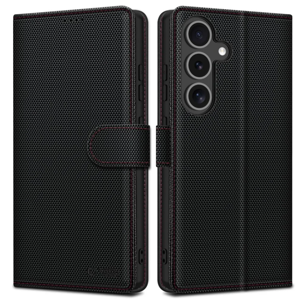 A Tech-Protect Wallet RS egy elegáns és tartós fliptok, amely a klasszikus stílust ötvözi az eredeti dizájnnal. Kiemelkedik érdes felületével, amely biztos fogást garantál, valamint egyedi piros varrásával, amely karaktert kölcsönöz neki.