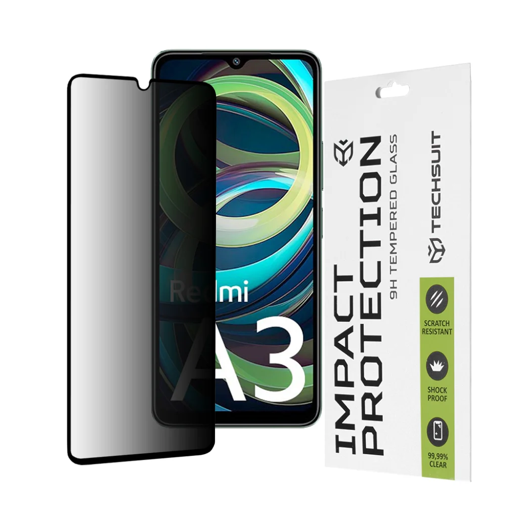Techsuit - 111D Privacy Teljes Ragasztó - Xiaomi Redmi A3 - Fekete üvegfólia