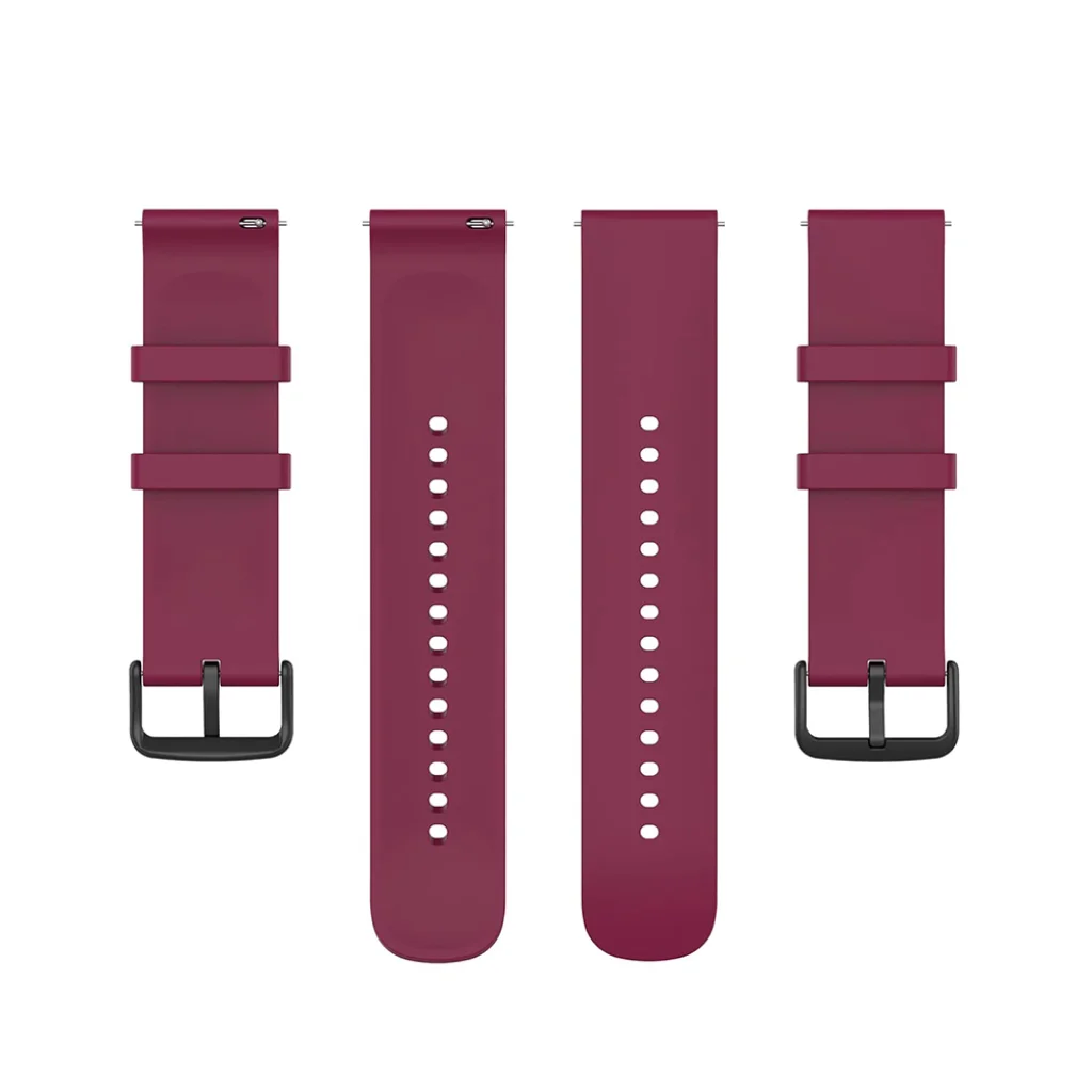 A szíj kiváló minőségű, puha tapintású szilikonból készült, amely rendkívül kényelmes viseletet biztosít, és bőrbarát tulajdonságokkal rendelkezik. Az élénk sötétpiros szín modern és figyelemfelkeltő megjelenést kölcsönöz okosórájának, míg a matt fekete fém csat elegánsan egészíti ki a sportos dizájnt. A szilikon anyag ellenáll a víznek, izzadságnak és kopásnak, így ideális választás sportoláshoz és intenzív használathoz is.