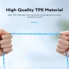 - Prémium minőségű és rendkívül tartós anyag (TPE): A kábel kiváló minőségű, puha TPE (Thermoplastic Elastomer) anyagból készült, amely rugalmasságot, sima felületet és kiemelkedő szakadásállóságot biztosít. A kábel bizonyítottan ellenáll a húzódásnak és a mindennapi igénybevételnek, extrém tartósságát szemlélteti a képeken is látható teherbírása (akár egy súlyzót is képes megtartani). Ez garantálja a hosszú távú megbízható működést, gubancolódás nélkül.