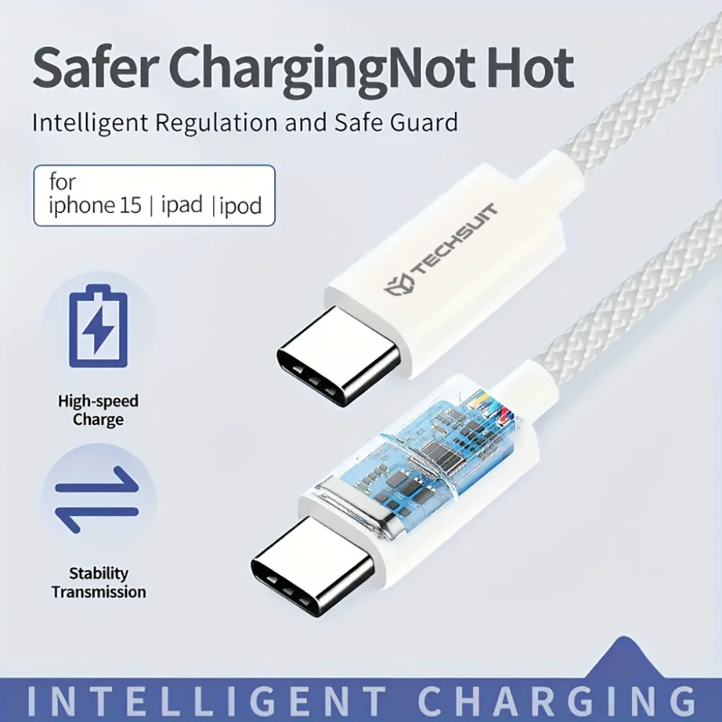 • Univerzális kompatibilitás: Ne keressen tovább! A Techsuit PCB114D USB-C – USB-C csatlakozóival tökéletes választás Apple (pl. iPhone 15, iPad, iPod USB-C modellek), Android és minden egyéb Type-C porttal rendelkező eszközéhez. Egy kábel az összes készülékéhez.