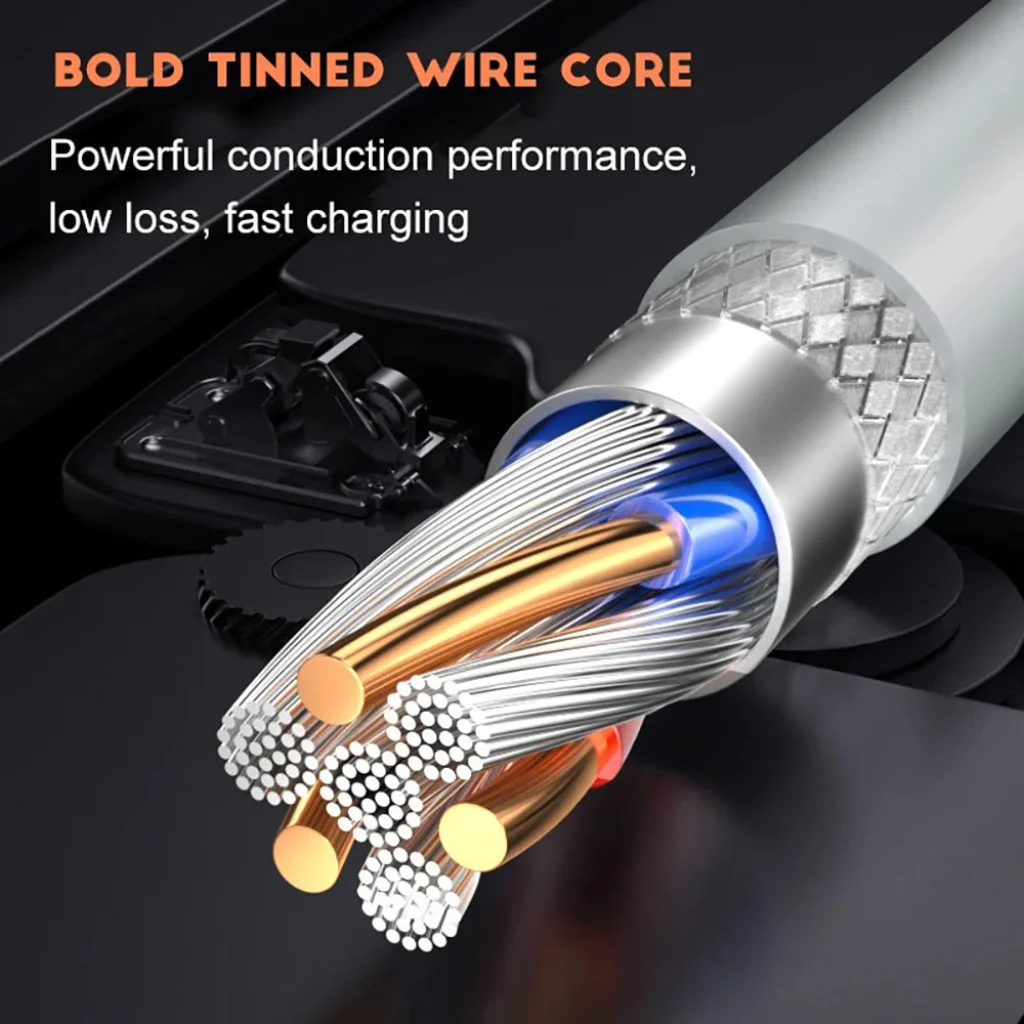 A kábel belsejében található vastag, ónozott rézmagok kiváló vezetőképességet biztosítanak, minimalizálva az áramveszteséget és garantálva a stabil, gyors töltést és adatátvitelt. Ez a robusztus belső szerkezet védi a kábelt a töréstől és meghosszabbítja élettartamát.