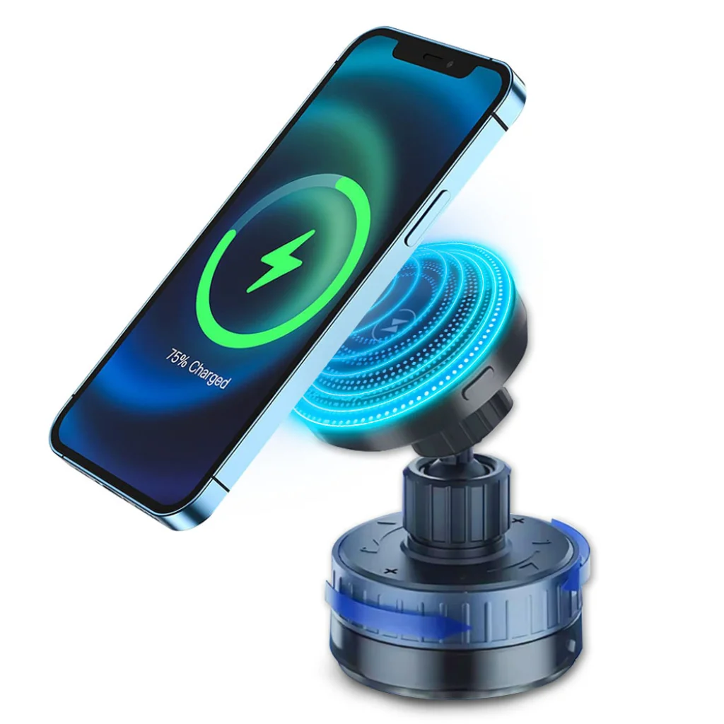 Termék leírás Techsuit - Autós tartó vezeték nélküli töltéssel (HOLD253) - MagSafe N52 mágnesek 15W, erős tapadókorong, műszerfalra - Fekete