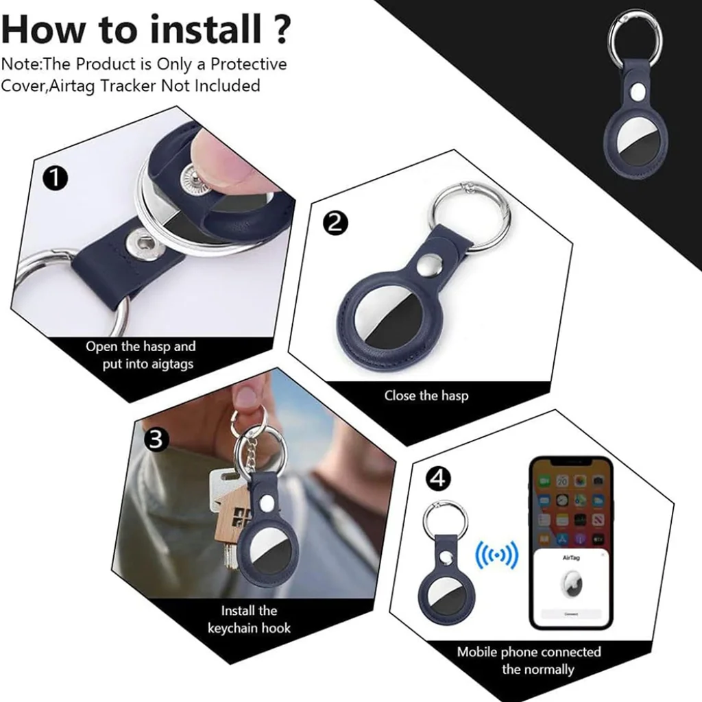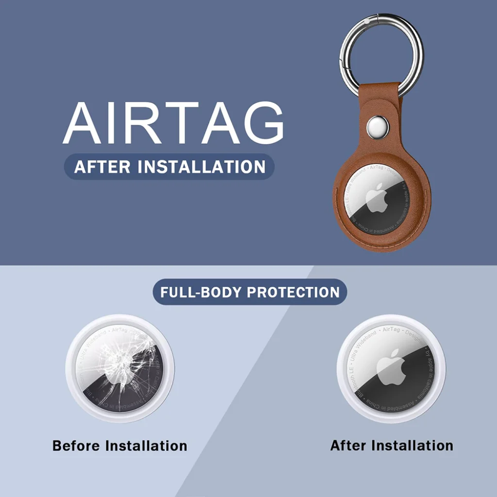 Techsuit - Biztonságos bőrtartó (SLH1) - Apple AirTag tok, fémgyűrűvel - Kék