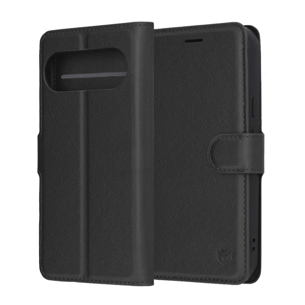 Techsuit bőrhatású flip tok Google Pixel 10 / 10 Pro telefonokhoz – Fekete