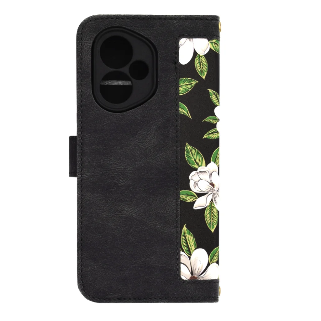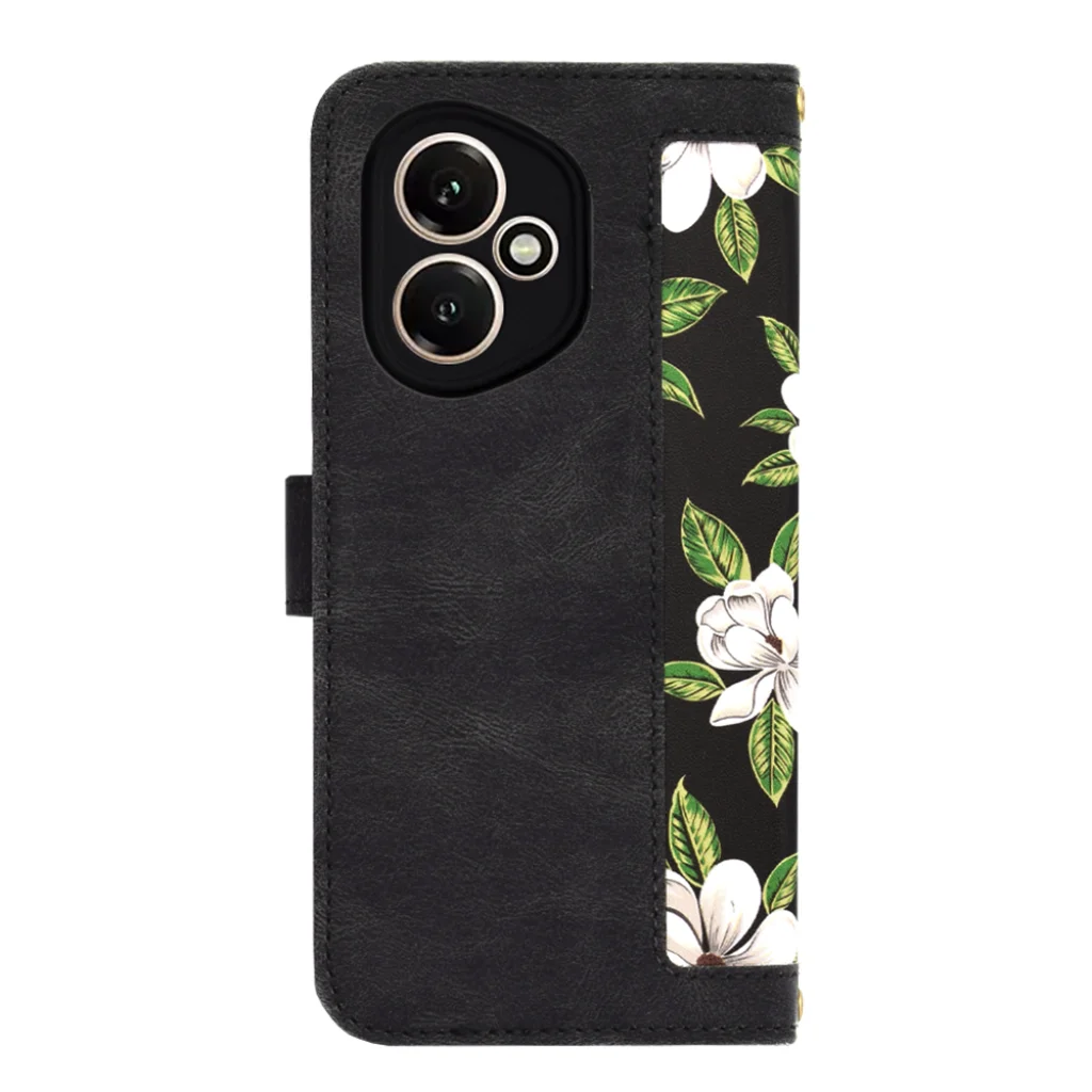 Az elegáns, fekete alapon fehér, liliomra emlékeztető virágokkal és élénkzöld levelekkel díszített minta garantáltan magára vonzza a tekinteteket, miközben a strapabíró anyag hosszú távú védelmet biztosít a mindennapi karcolások, ütések és por ellen. A precíz kivágásoknak köszönhetően minden port, gomb és a Honor 400 5G kamera rendszere akadálytalanul hozzáférhető marad, a tok tetejénél elhelyezett apró lyukak pedig a hangszóró szabad működését garantálják.