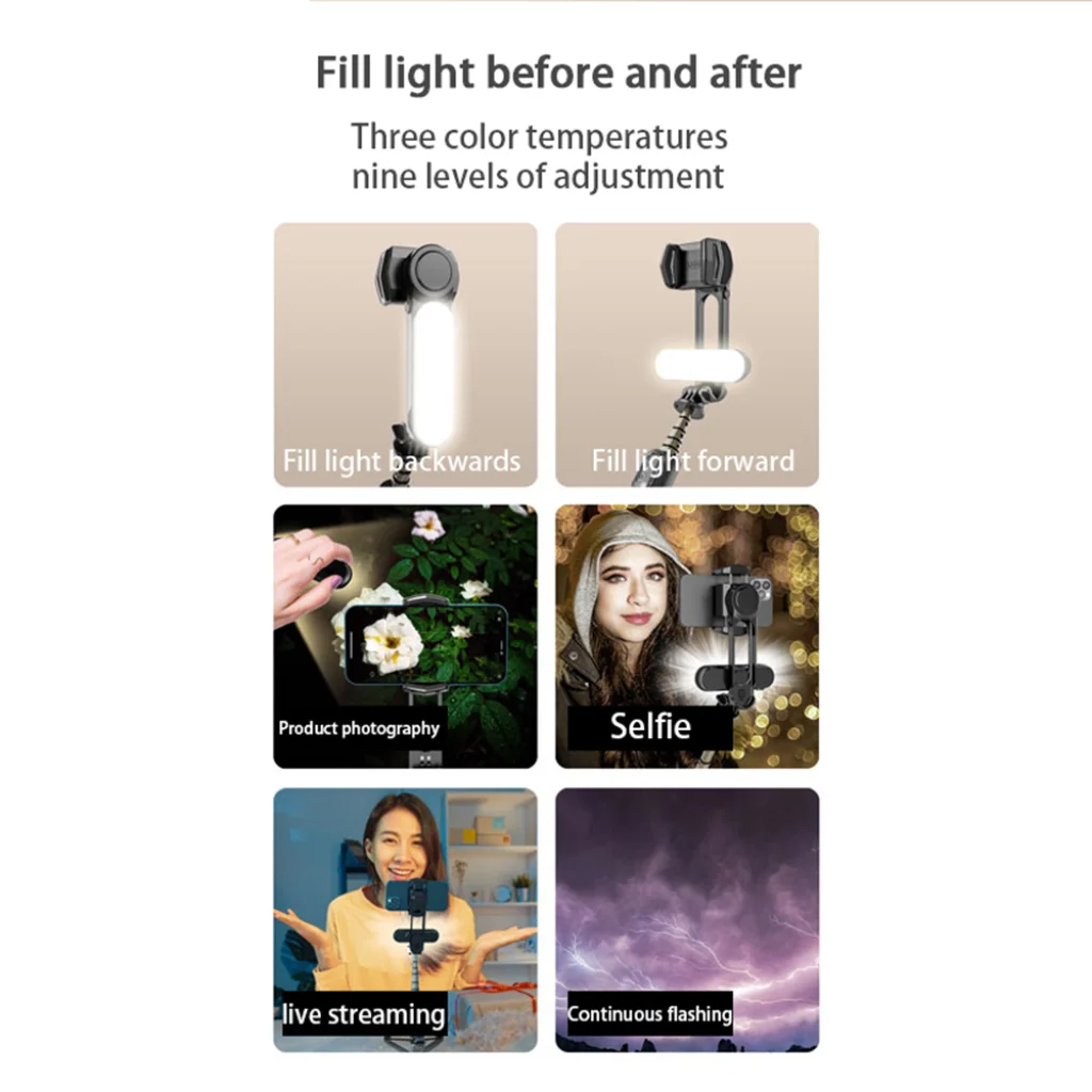 • Sokoldalú elhelyezés: A lámpa előre és hátra is felszerelhető, így optimalizálhatja a megvilágítást akár szelfizéshez, akár a fő kamera használatához.