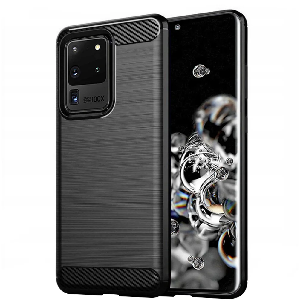 Techsuit - Karbon Szilikon - Samsung Galaxy S20 Ultra 4G / S20 Ultra 5G - Fekete tok