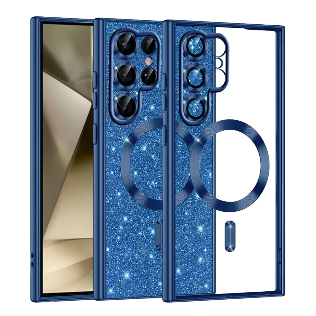 Techsuit - Luxus Csillogó MagSafe - Samsung Galaxy S22 Ultra 5G - Mélykék tok