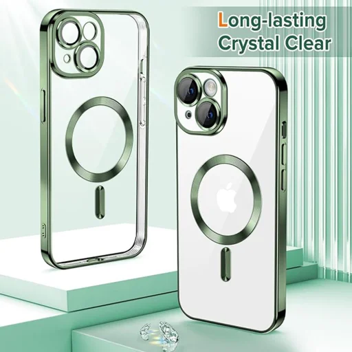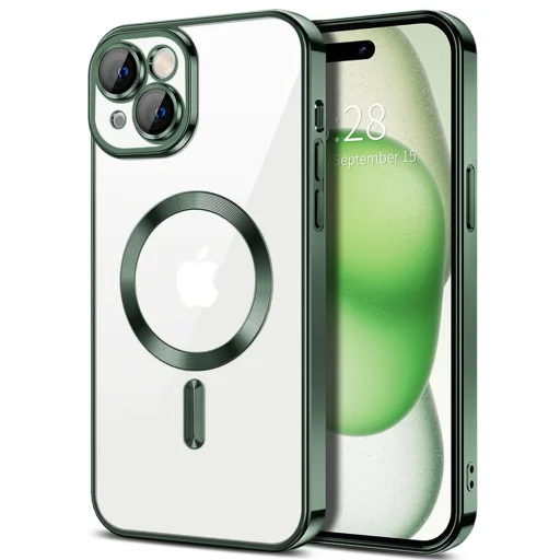 Techsuit - Luxus Kristály MagSafe - iPhone 15 - Mélyzöld tok