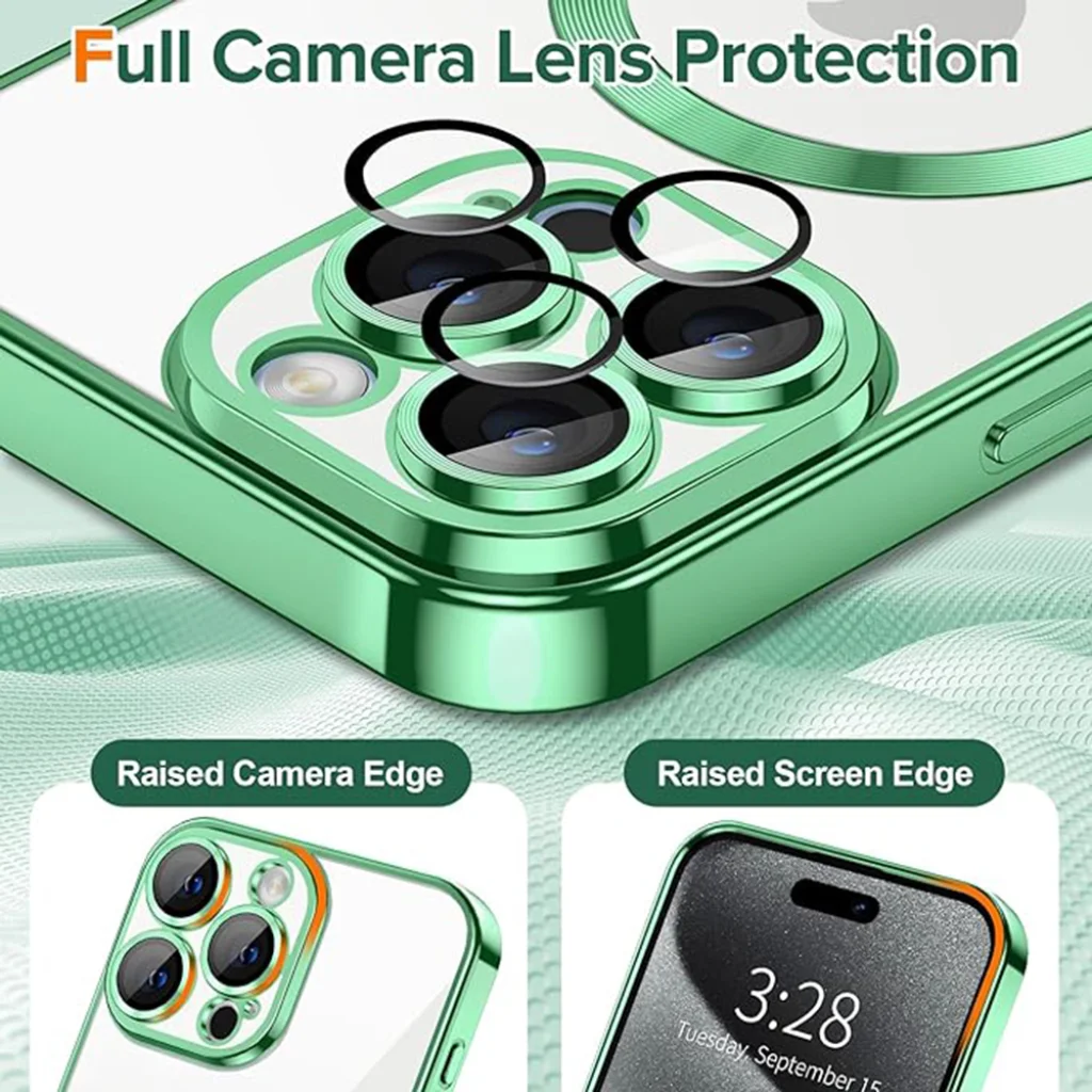 Techsuit - Luxus Kristály MagSafe - iPhone 15 Pro Max - Világoszöld tok