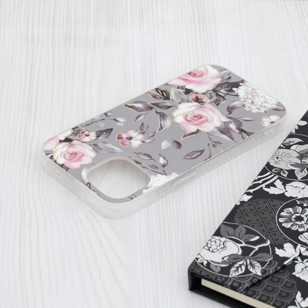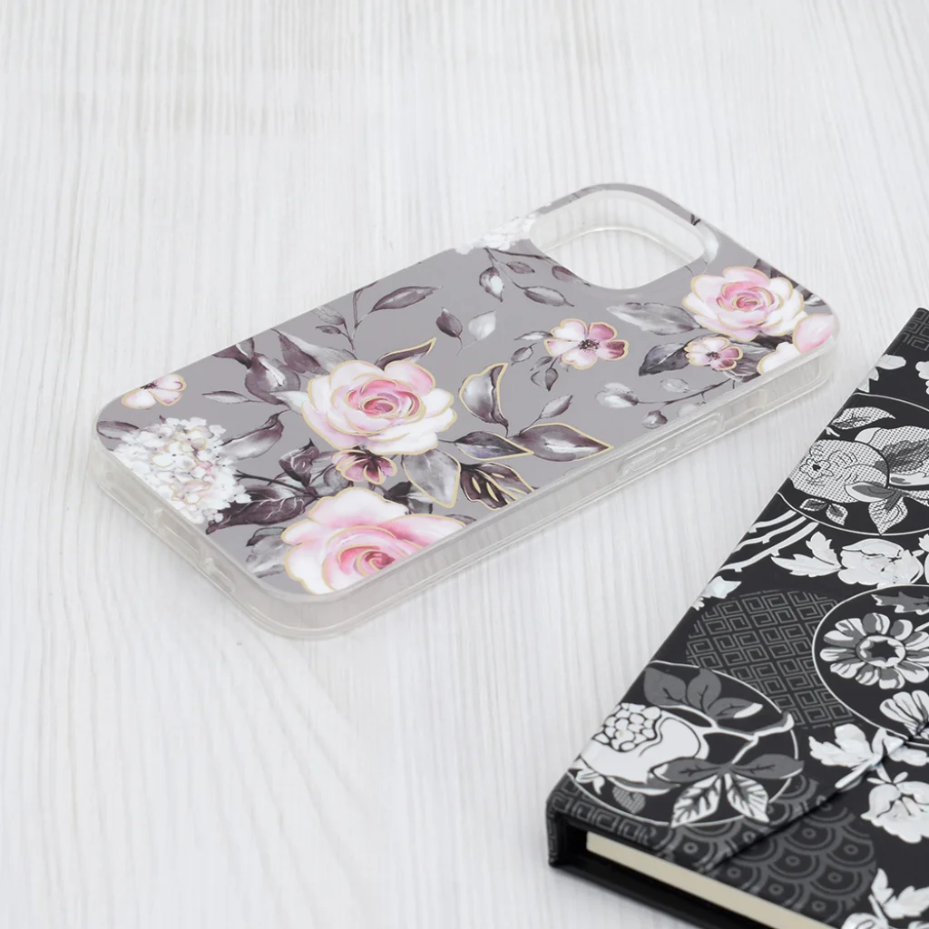 Techsuit - Márvány Sorozat - iPhone 15 - Ruth Szürke Virágzása tok