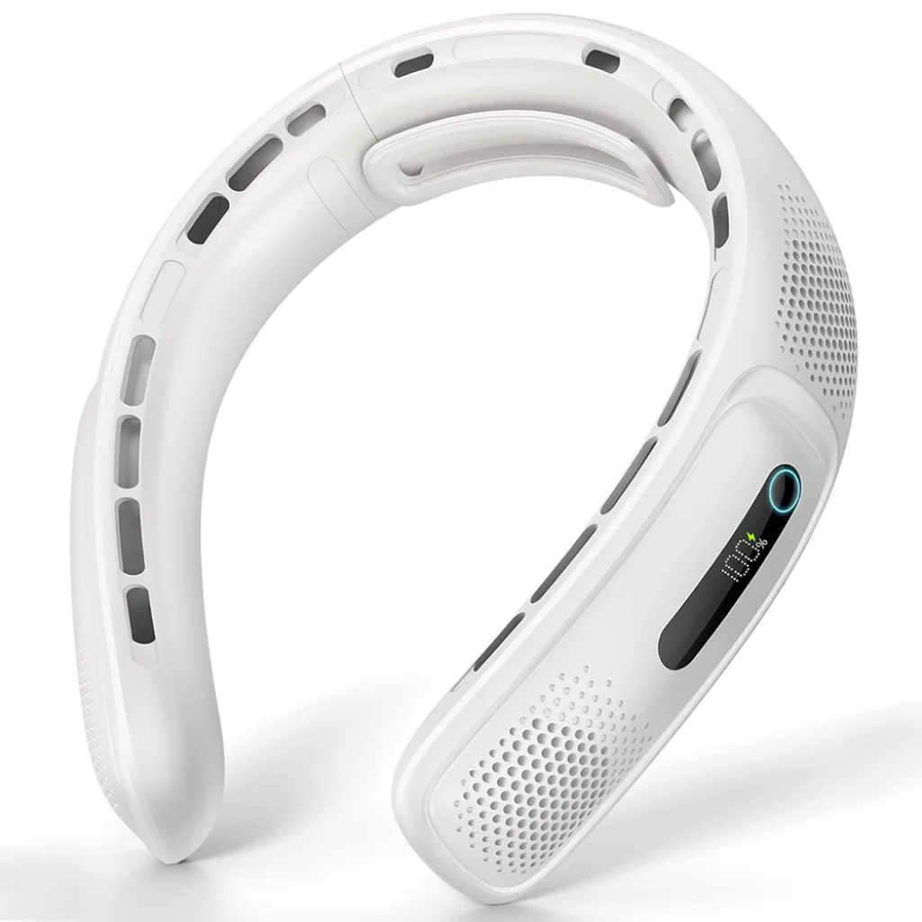 Termék leírás Techsuit - Nyakventilátor (S11) - Hordozható, Szilikon Támasszal, 4-szeres Légáramlás, Digitális Kijelző, 4000mAh, 4800RPM - Fehér