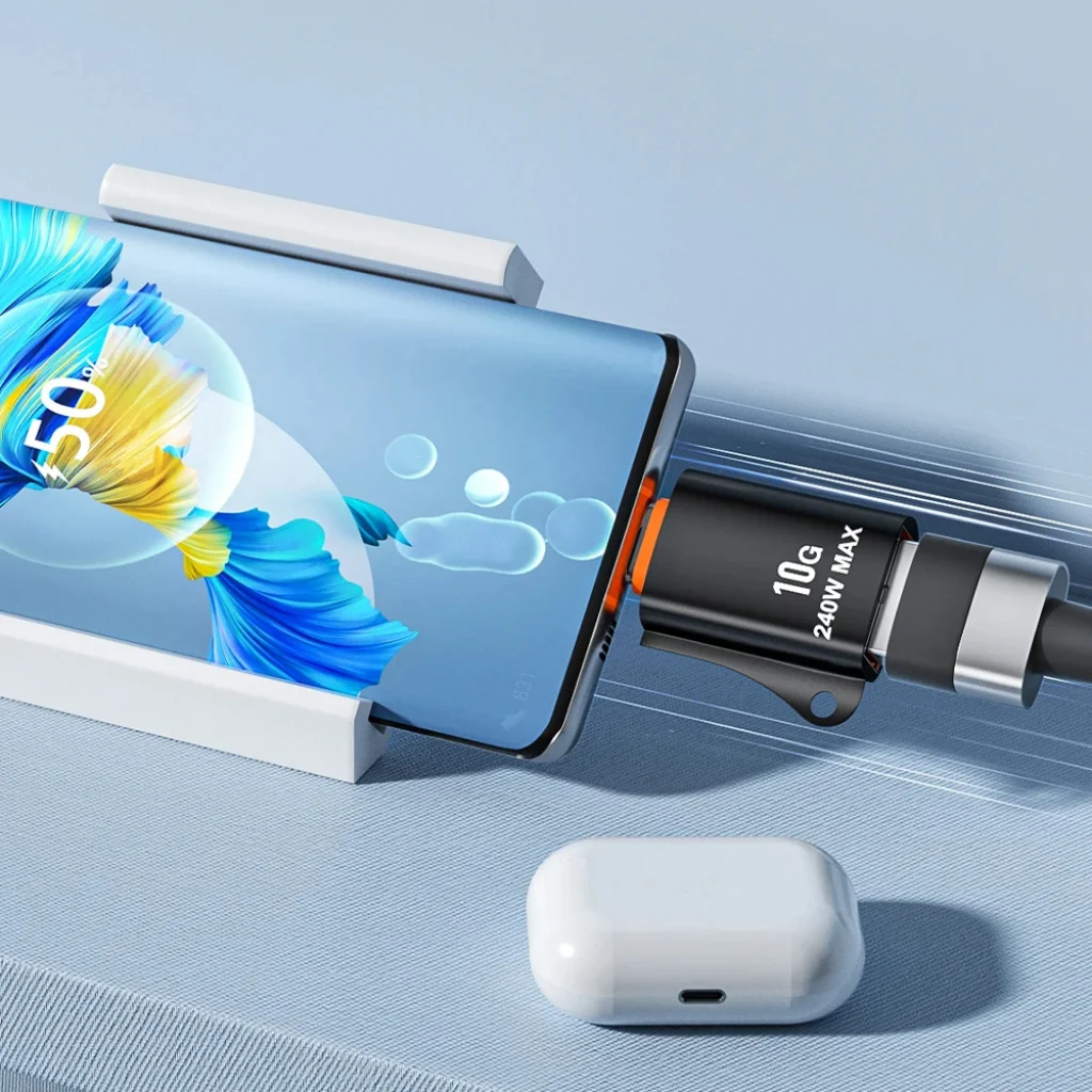 - Kiemelkedő sebesség (10Gbps) és töltési teljesítmény (240W max).