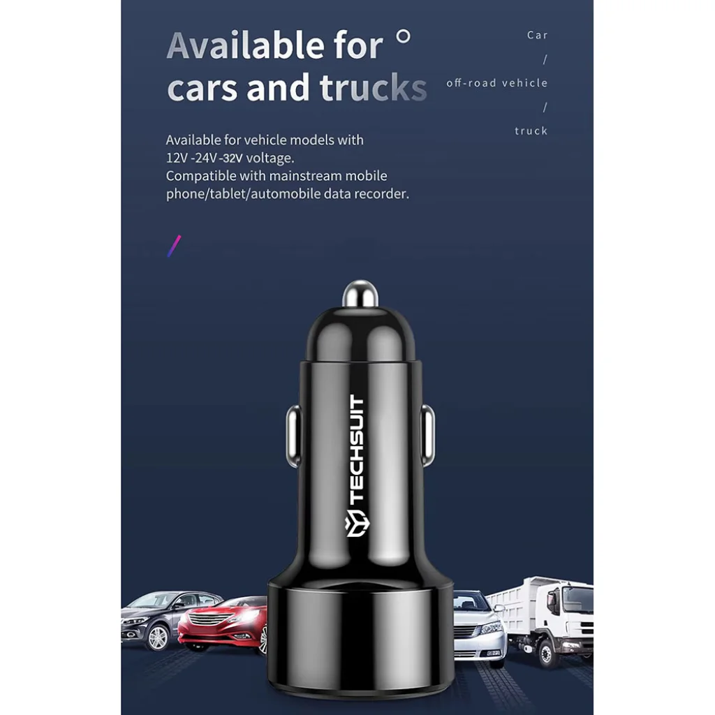 Termék leírás Techsuit - Prémium autós töltő (TE-P31) - USB QC3.0 18W, Type-C PD30W, összesen 48W, LED fény - Fekete