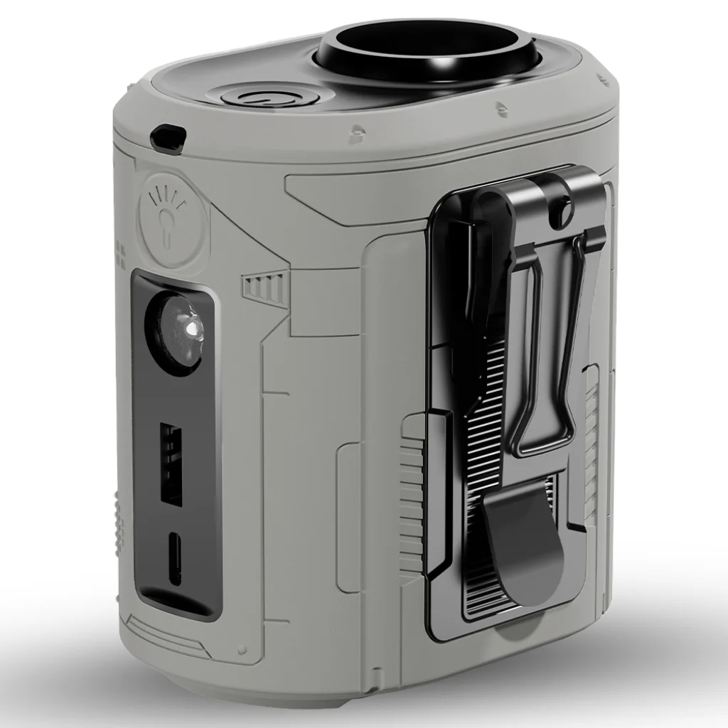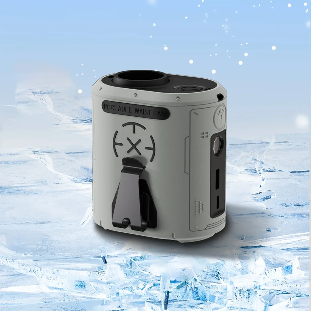 Termék leírás Techsuit - Prémium hordozható mini ventilátor (Z14) - beépített akkumulátorral, újratölthető, 5 fokozatú szélsebességgel, övcsattal, 5000mAh - szürke