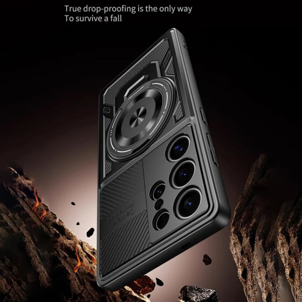 - Integrált kameravédelem csúszkával: A Techsuit RuggedCam tok legkiemelkedőbb funkciója a beépített, elhúzható csúszka, amely tökéletesen védi a Samsung Galaxy S20 FE érzékeny kamerarendszerét a karcolásoktól és a szennyeződésektől. Ha nem használod a kamerát, egyszerűen elhúzhatod a védőpanelt, garantálva annak sértetlenségét és a magánéleted védelmét.