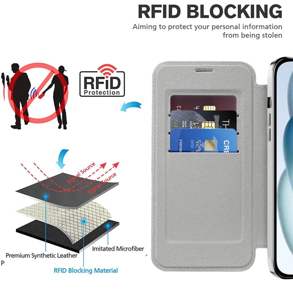 Techsuit - SmartMag könyvtok - iPhone 15 - Szürke tok
