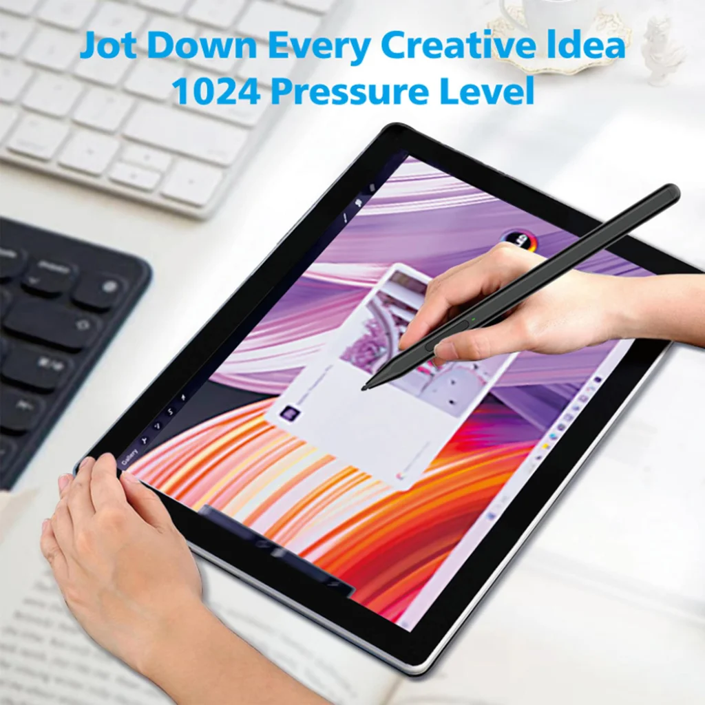 Termék leírás Techsuit - Stylus toll (F97) - Microsoft Surface-hez, Aktív, Type-C, Palm Rejection (tenyér-érintkezés kizárás), Oldalsó tapadás, 90mAh, 5V, 0.2A - Fekete