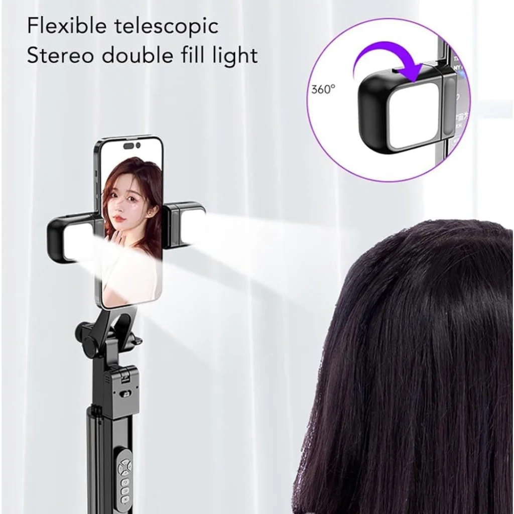 Termék leírás Techsuit - Szelfibot (K30S) - Kompakt állvány tartó, Bluetooth távirányító, Dupla LED világítás, Összehajtható, 167 cm - Fekete