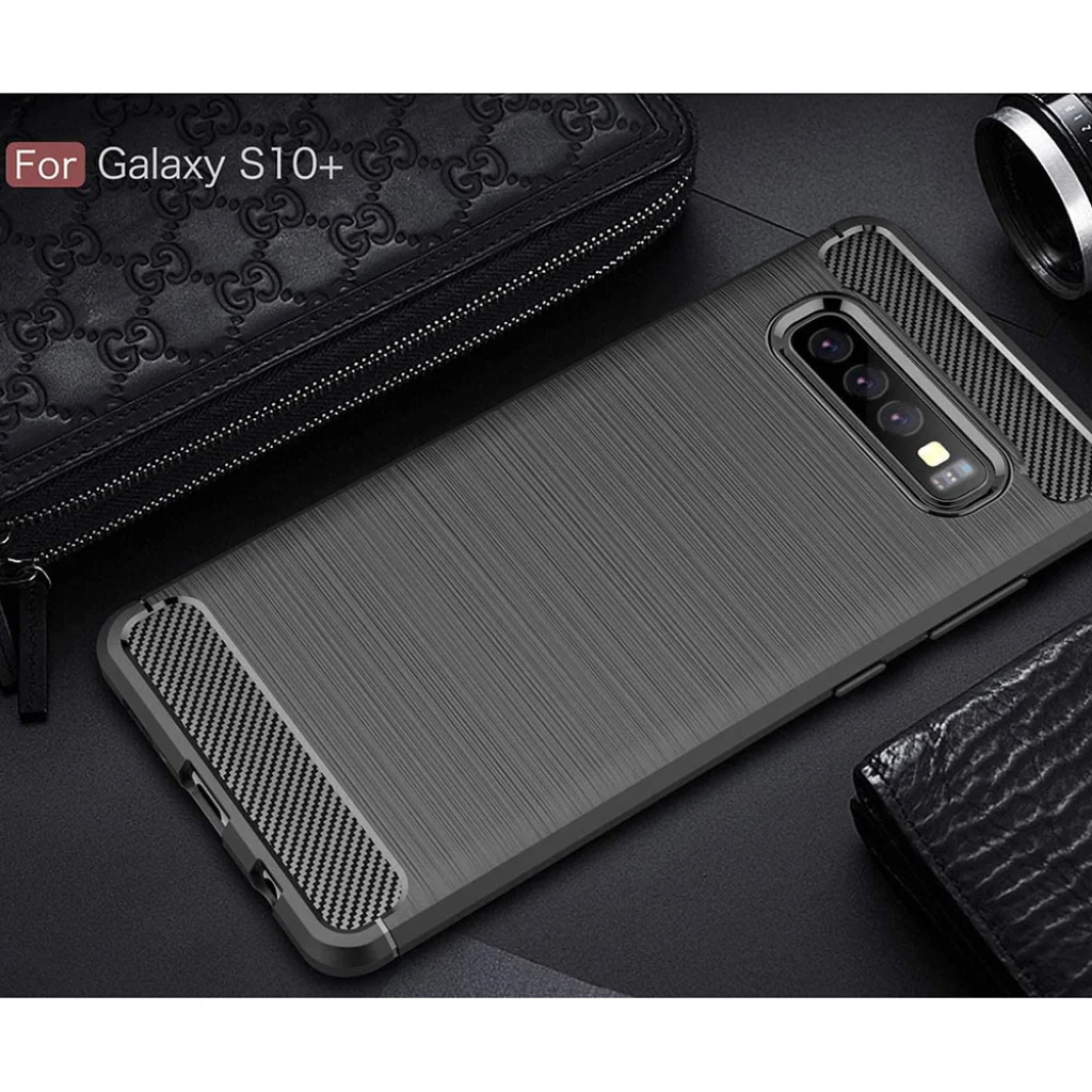 Techsuit - Szénszálas Szilikon - Samsung Galaxy S10 Plus - Fekete tok