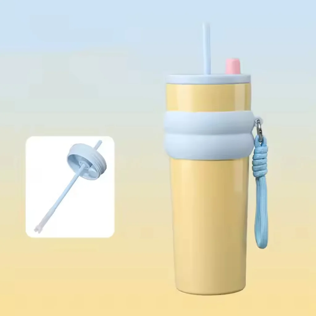 Techsuit - Termosz (THM7) - Autós pohár, Egyszeres szívószál, Rozsdamentes acél 316, 710 ml - Sárga