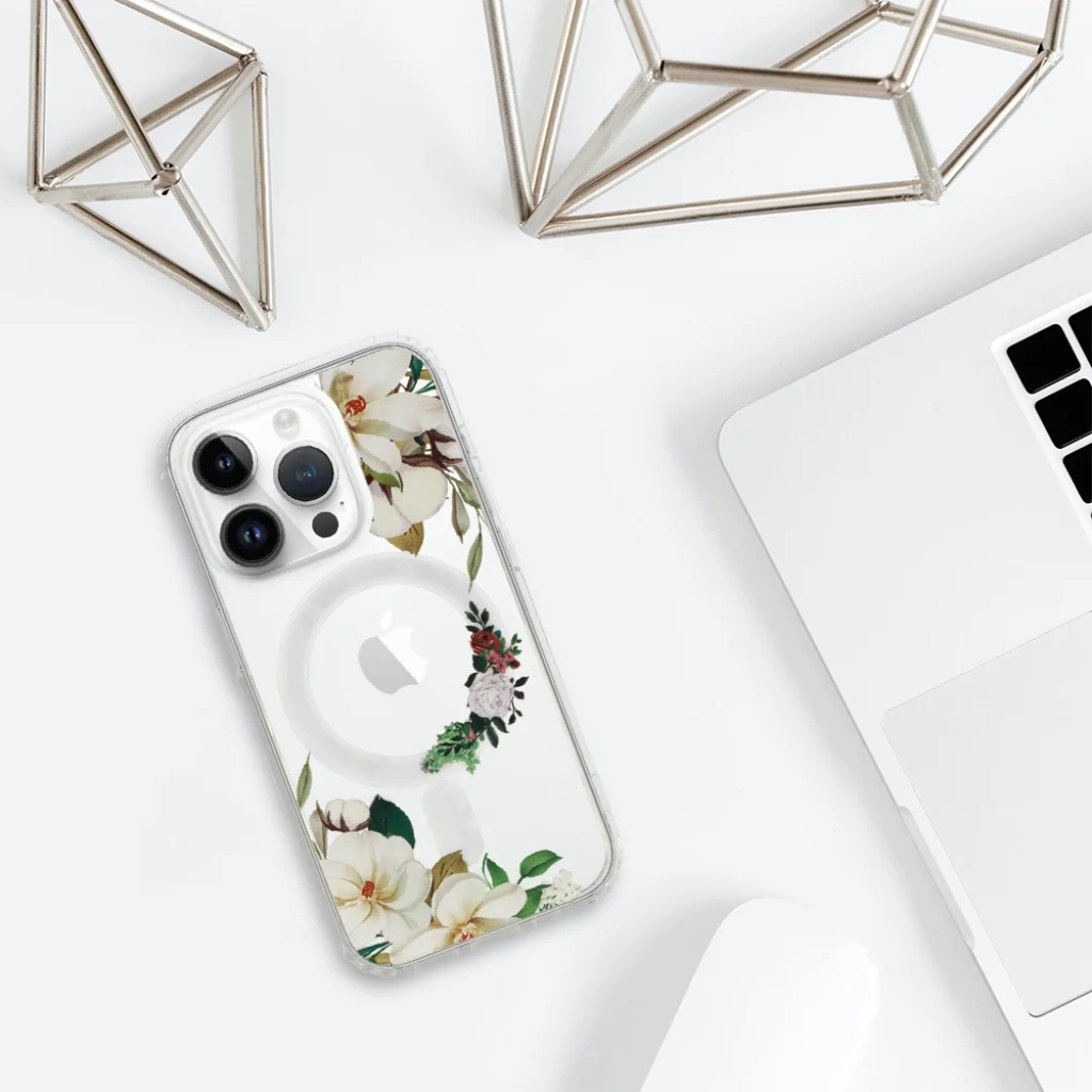 Tel Protect Flower Magsafe - egy átlátszó tok, amelyet egyedi virágmintával díszítettek. A tok védi az okostelefon hátulját, oldalait és kijelzőjét. A tokba épített mágneseknek köszönhetően kompatibilis az Apple MagSafe kiegészítőkkel.