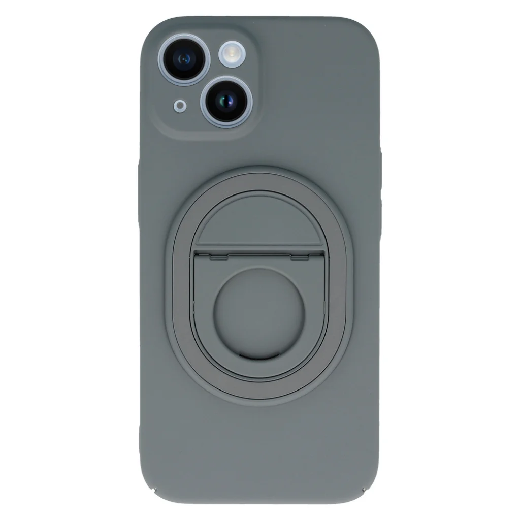 - Praktikus beépített gyűrűvel rendelkezik, amely tartóként és állványként is funkcionál, lehetővé téve a telefon szabad használatát függőlegesen és vízszintesen is