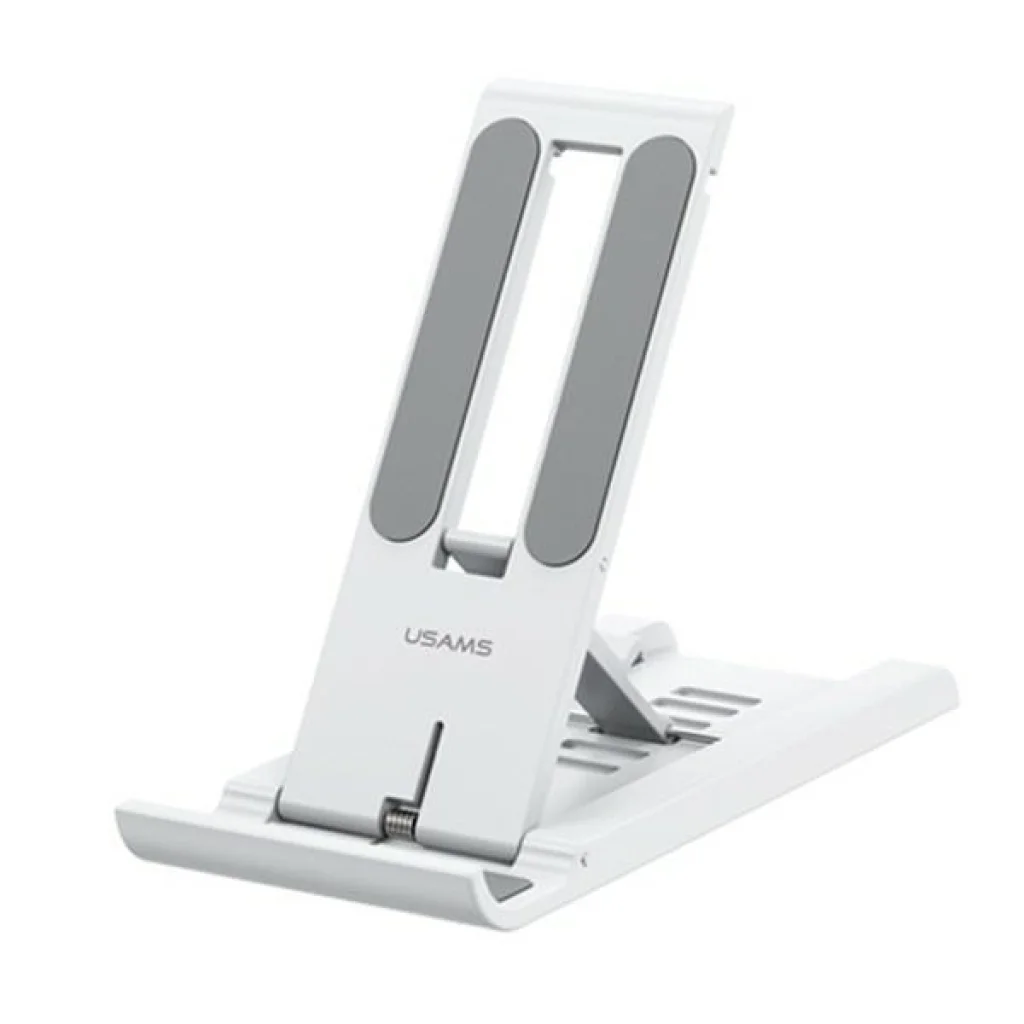 USAMS univerzális állítható asztali tartó bármilyen telefonhoz vagy tablethez. Az univerzális tartó otthoni és irodai használatra ideális videónézéshez, olvasáshoz, tanuláshoz, videohívások lebonyolításához és videokonferenciák tartásához. Előnyök: - Könnyű beállítás a kívánt látószögre a hat szintű állíthatóságnak köszönhetően. - A tartó hátoldala és a horony csúszásgátló anyaggal van bevonva, hogy megakadályozza a csúszást és a karcolódást. - A hátlapon található mélyedés segít növelni a légáramlást a hő elvezetése érdekében, megakadályozva a telefon túlmelegedését.