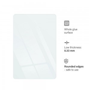 A Blue Star edzett üveg 9H keménységű, hogy meghosszabbítsa készüléke képernyőjének élettartamát. Az extrém alacsony 0,3 mm vastagságnak köszönhetően teljesen észrevétlen és láthatatlan. Biztosítja a 100%-os érintési értéket és a használat szabadságát. Az üveg védi a képernyőt a repedésektől, karcolásoktól és sérülésektől. Az oleofób bevonat biztosítja a képernyő tisztaságát, valamint ellenáll a ujjlenyomatoknak és szennyeződéseknek. Az üveg tartalmazza az önálló összeszereléshez szükséges elemeket speciális matricákkal, amelyek megkönnyítik az üveg helyes elhelyezését. Az alkalmazás után az üveg teljes felületének köszönhetően jól tapad a képernyőhöz, légbuborékok nélkül. A nem ragasztós formula megkönnyíti az üveg képét, nyomok nélkül. Az üveg szélei lekerekítettek – biztonság garantált. Tulajdonságok: Ragasztó: Az egész felületen Vastagság: 0,3 mm Anyag: Edzett üveg Védelmi szint: Nagyon magas Megjelenés: A telefonmodellhez illeszkedő színű elemek A készlet tartalmaz: - fólia - rongy a por eltávolításához, a képernyő zsírtalanítása - tisztítókendő a légbuborékok eltávolításához - matrica készlet a pontos üvegpozicionálás érdekében a képernyőn