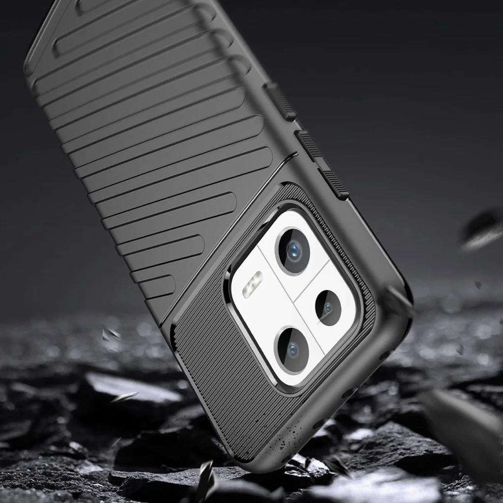 Páncélozott tok Xiaomi 13 a Thunder Case sorozatból fekete színben A Thunder Case sorozat hőre lágyuló és tartós anyagból készül, amely jó rugalmasságot biztosít. A tok kifejezetten a Xiaomi 13-hoz lett tervezve, és tökéletesen védi a telefont az esések vagy karcolások okozta sérülésektől (például zsebben hordott kulcsok miatt). A kijelző és a hátsó kamera körüli megemelt szélek védik a telefont ezen elemek karcolódásától, amikor sík felületre helyezik. Reagáló gombokkal és kivágásokkal rendelkezik a portok számára. Tökéletes azok számára, akik értékelik a stílust és a minőséget, és gondoskodni szeretnének készülékükről. Műszaki adatok:- Sorozat: Thunder Case