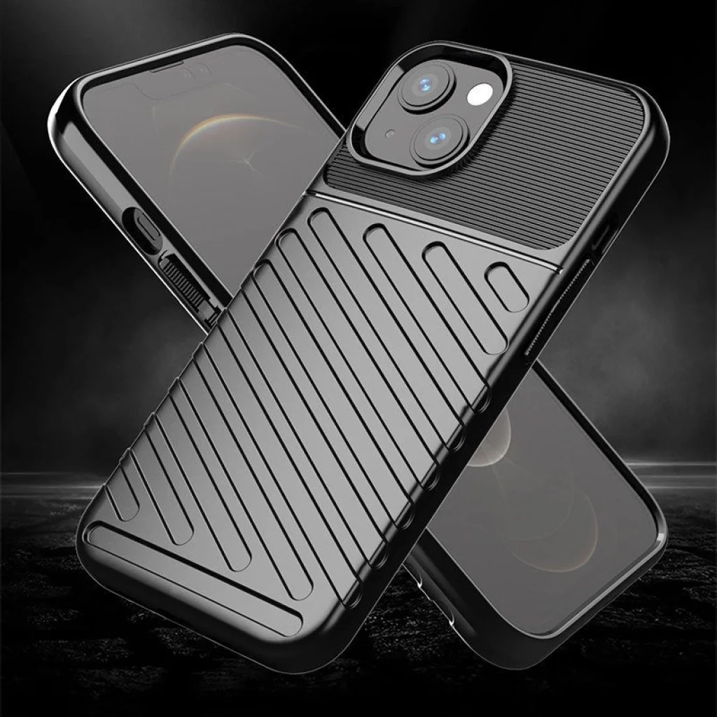 A termék és a csomagolás nem tartalmaz gyártói logót. A Thunder tok egy elegáns textúrájú masszív telefontok széria. A kiváló minőségű TPU anyagnak és a belső ütéselnyelő mintázatának köszönhetően kiváló védelmet nyújt leesés, ütődés, karcolás, nyomok és rázkódás ellen.