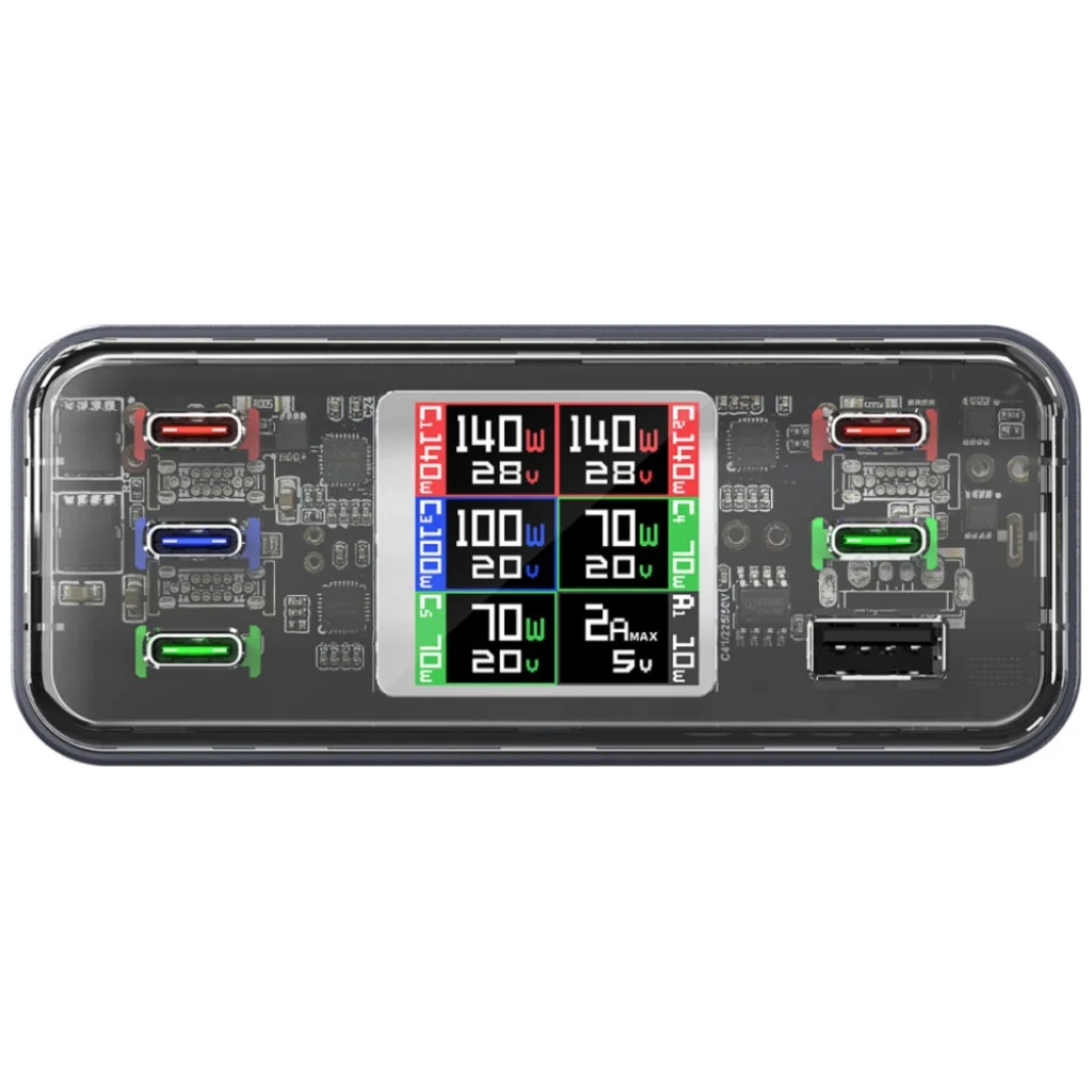 | Portok száma | 6 (5× USB-C + 1× USB-A) |