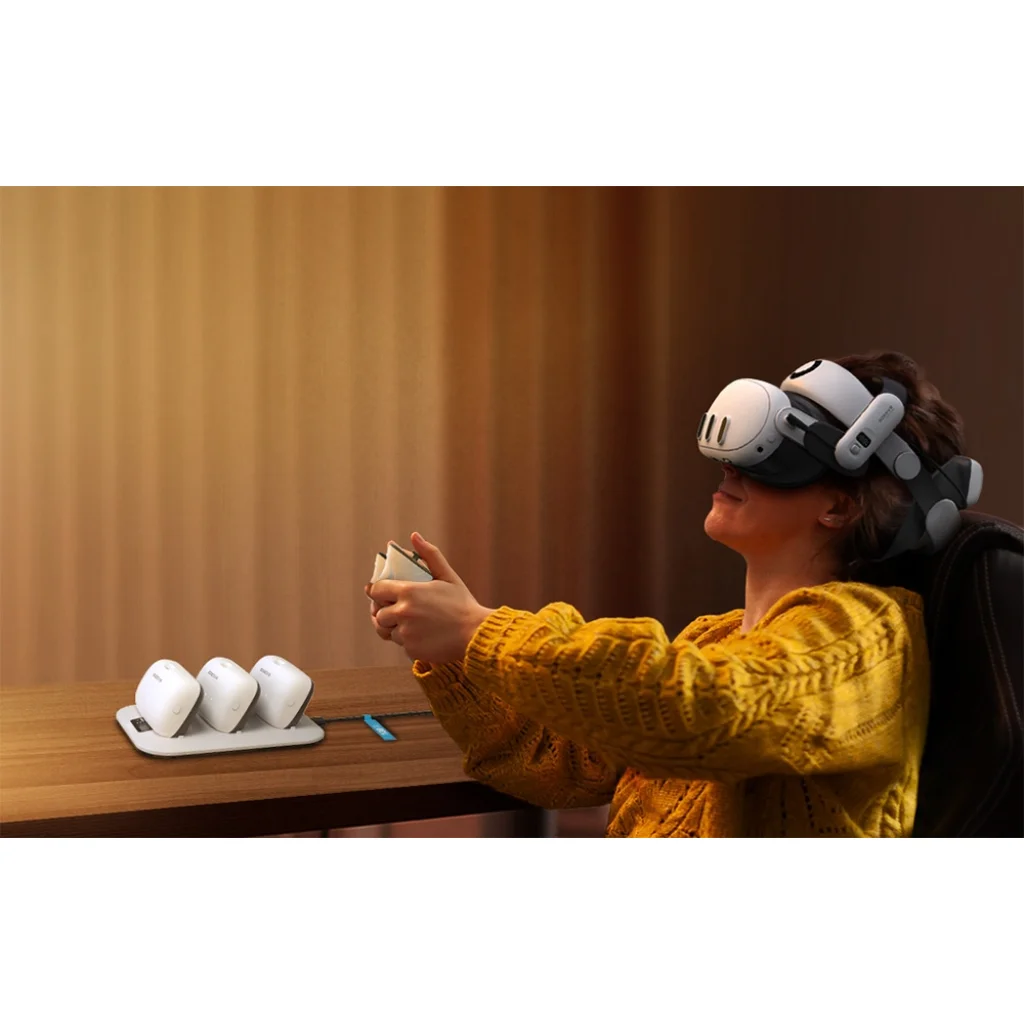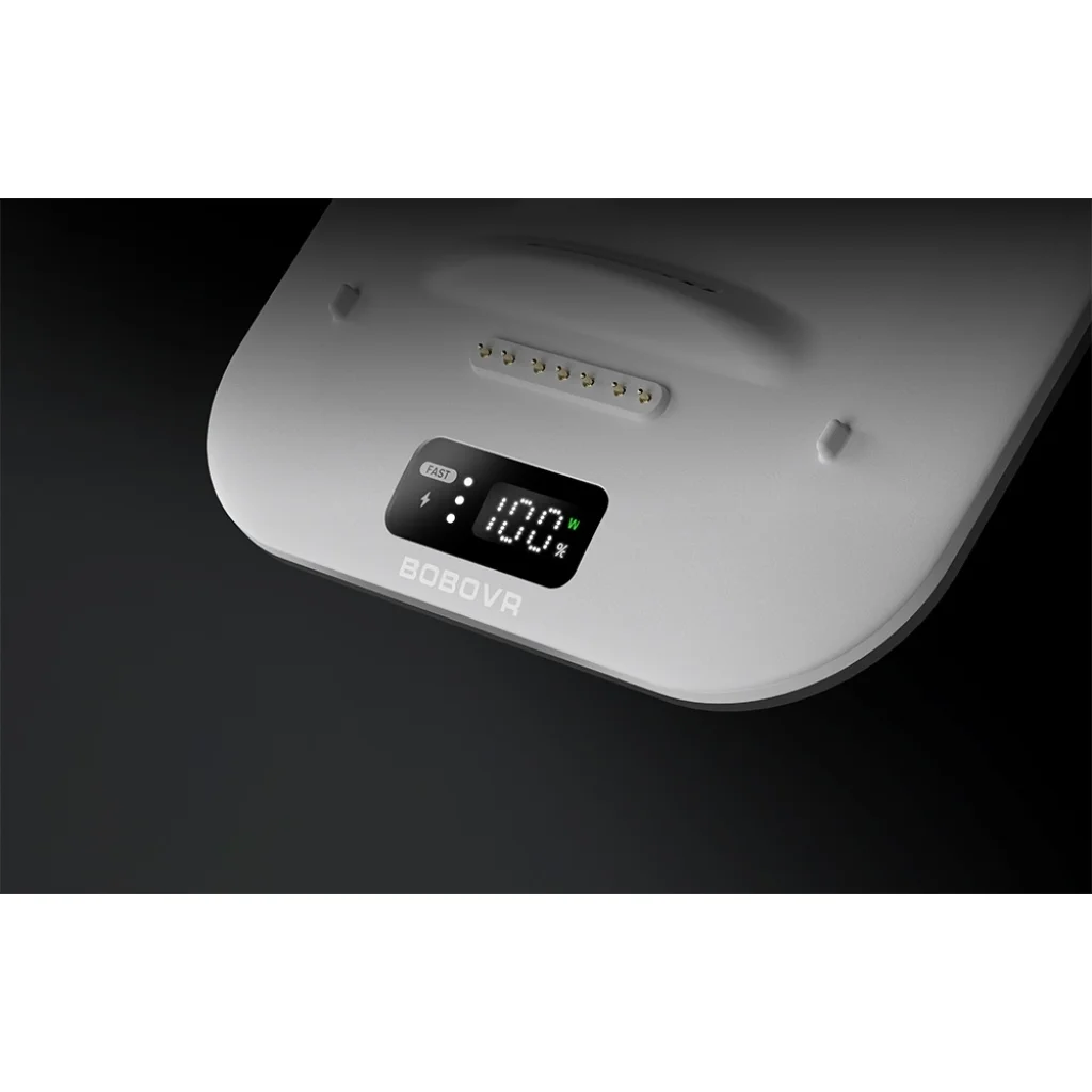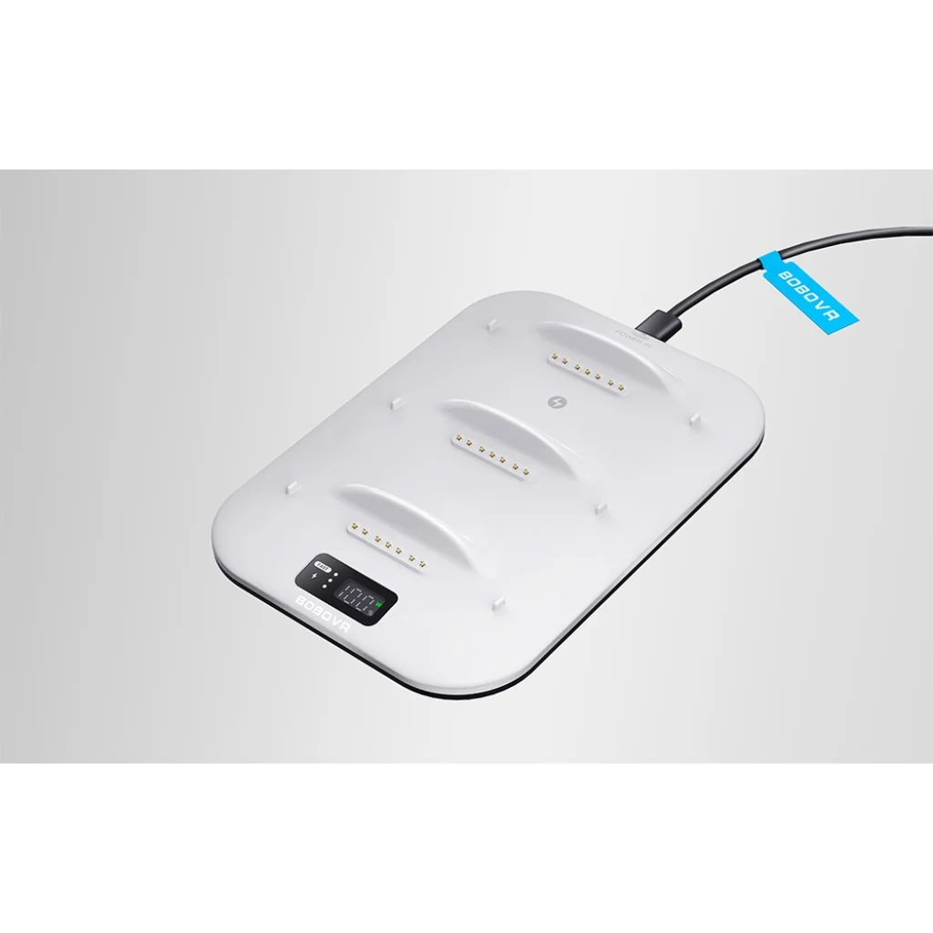 A BOBOVR BD3 töltőállomás egy fejlett megoldás, amely kifejezetten a B100 akkumulátorok töltésére készült. Egyszerre három akkumulátor 30 wattal való töltését teszi lehetővé, így akár egy óra alatt 80%-os kapacitásig töltheti fel azokat, hosszabb játékidőt biztosítva megszakítások nélkül.
