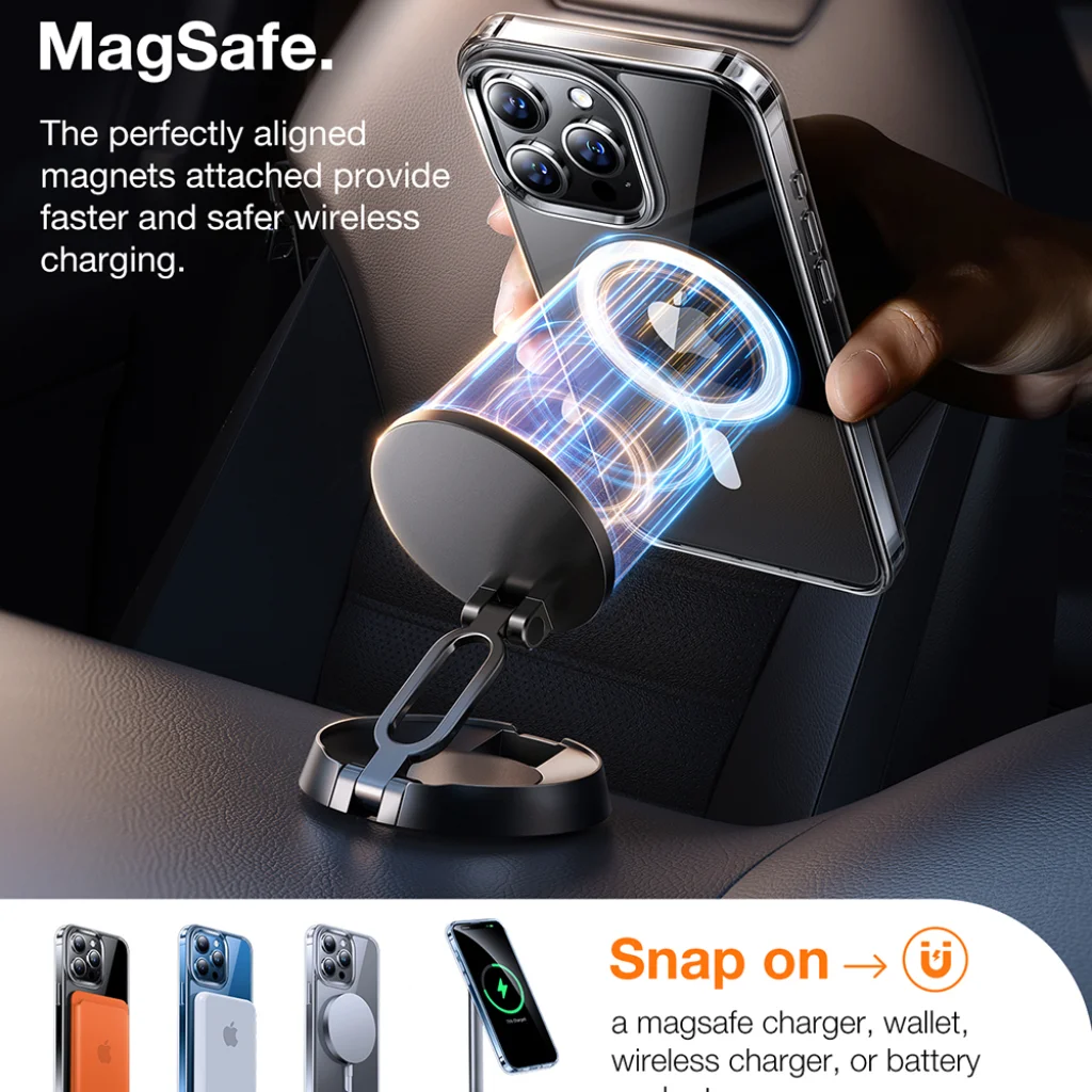 Tapasztalja meg a MagSafe kényelmét és erejét! A tokba tökéletesen illeszkedő mágnesek gyorsabb és biztonságosabb vezeték nélküli töltést biztosítanak. Az exkluzív, 38 neodímium mágnesből álló TORRAS szabadalmaztatott Halbach mágneses elrendezés rendkívül erős vonzást garantál – 2-szer erősebbet (18N) a hagyományos mágnesekhez képest (9N). Ennek köszönhetően könnyedén és biztonságosan csatlakoztathatja MagSafe töltőjét, pénztárcáját, vezeték nélküli töltőjét vagy akkumulátorát, biztosítva a stabil és hatékony működést.