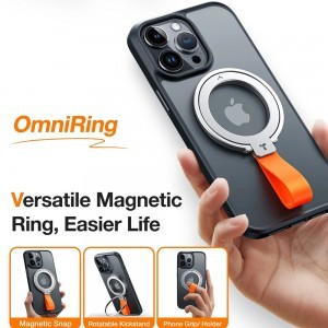 • Mágneses rögzítés: Az "OmniRing" mágneses kialakításnak köszönhetően a gyűrű pillanatok alatt, stabilan illeszkedik telefonjához vagy MagSafe-kompatibilis tokjához. Egy egyszerű mozdulattal ("Just Snap") fel- és levehető.