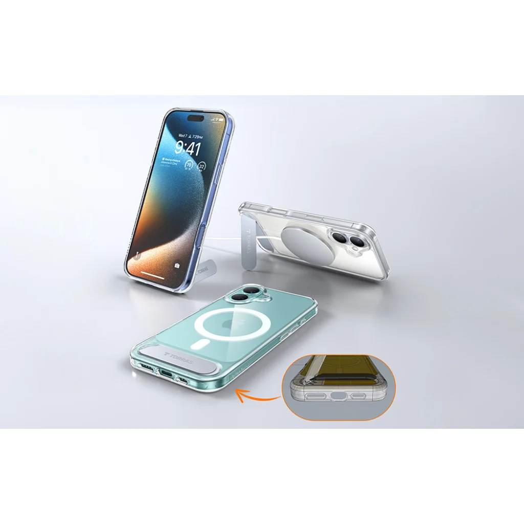 A Torras Pstand sorozatú iPhone 16 tok mágneses kialakításával kényelmet és védelmet biztosít készülékének, stabil állvány funkcióval. Gyors vezeték nélküli töltést is lehetővé tesz, és a mágneses kiegészítőkkel való kompatibilitás növeli funkcionalitását.