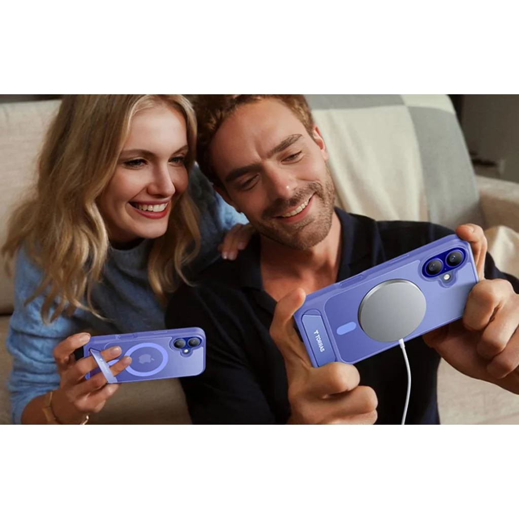 A Torras Pstand sorozatú tok iPhone 16 készülékhez mágneses kialakítású, stabil állványt kínál a kényelem és a készülék védelme érdekében. Gyors vezeték nélküli töltést is lehetővé tesz, a mágneses kiegészítőkkel való kompatibilitás pedig fokozza a funkcionalitását.
