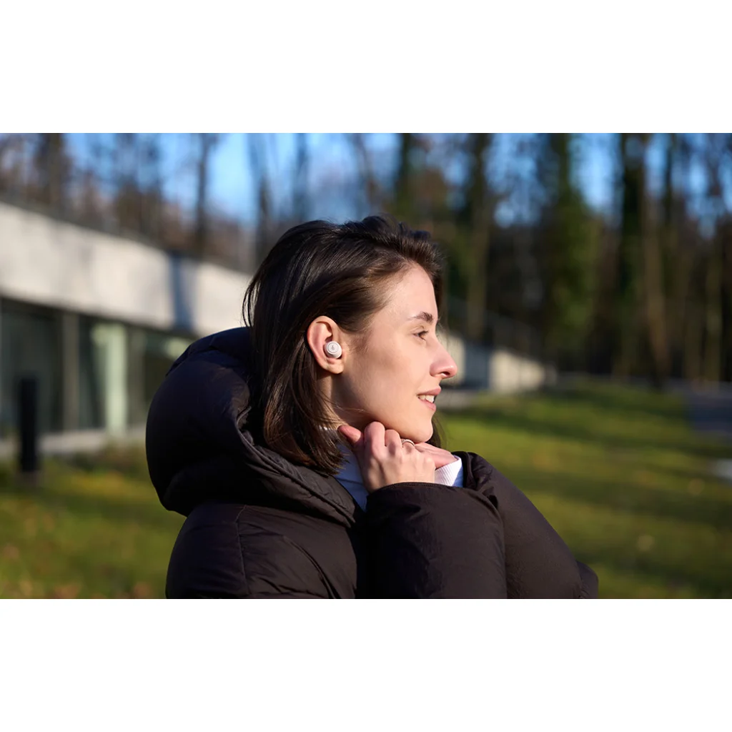 Az ergonomikus kialakítás a három méretben (S/M/L) kapható antimikrobiális fülpárnákkal kombinálva garantálja a tökéletes illeszkedést és az egész napos viselési kényelmet. Az IP54-es tanúsítás véd a nedvesség és a por ellen, így kiváló választás a kültéri tevékenységekhez.