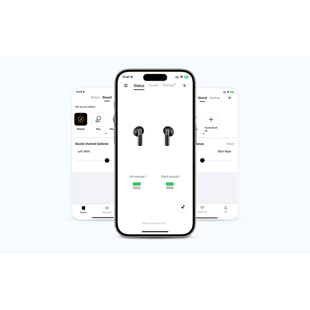 A fejlett 360°-os surround hangzás algoritmusnak köszönhetően úgy érezheti magát, mintha egy koncert vagy mozi közepén lenne. A térbeli hanghatás valósághű hangszínpadot hoz létre, amely minden oldalról körülveszi Önt a páratlanul magával ragadó élmény érdekében. Emellett a fejhallgató hangzását a dedikált QCY alkalmazás segítségével kedvenc zenei műfajaihoz igazíthatja. A beépített EQ-beállításokkal, mint például a Rock, a Klasszikus és a Bass Boosted, tökéletesen az Ön preferenciáira szabott hangzást élvezheti. Az alkalmazás a fejhallgató töltöttségi szintjének felügyeletét, a készülék helyének meghatározását, érintésvezérlést, üzemmódváltást és szoftverfrissítéseket is kínál.