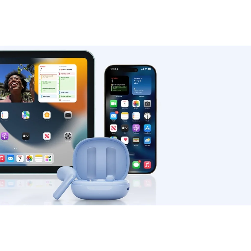 Egész napos zene, nulla korlátozás A hosszú élettartamú akkumulátor akár 24 órányi zenehallgatást tesz lehetővé töltés nélkül (kikapcsolt ANC-vel), és mindössze 10 perc töltés további egy óra használatot biztosít. Bekapcsolt ANC-vel az üzemidő akár 18 óra is lehet. Az alkalmazott Bluetooth 5.4 verzió stabil kapcsolatot és rendkívül alacsony késleltetést (0,06 másodperc) biztosít, így a fejhallgató nemcsak zenehallgatáshoz, hanem játékhoz is kiváló választás. A többpontos funkció lehetővé teszi a két eszközhöz való csatlakozást, valamint a köztük való váltást, ami különösen hasznos egy zsúfolt munkanap során.