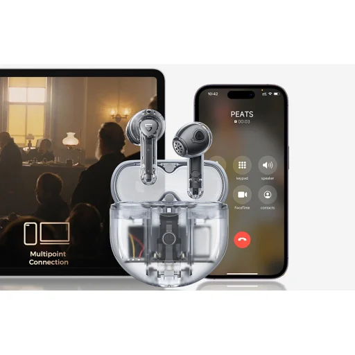 Mondj búcsút a kapcsolódási problémáknak! A fülhallgató támogatja a Bluetooth 5.3-at, amely azonnali kapcsolatot biztosít interferencia nélkül. Ezen kívül lehetővé teszi a fülhallgató egyszerre 2 eszközzel való párosítását és kényelmes váltást közöttük. Nézel egy filmet a laptopodon, és közben hívnak? Nem probléma! Fogadd a hívást, és a hívás végeztével folytasd a filmet.